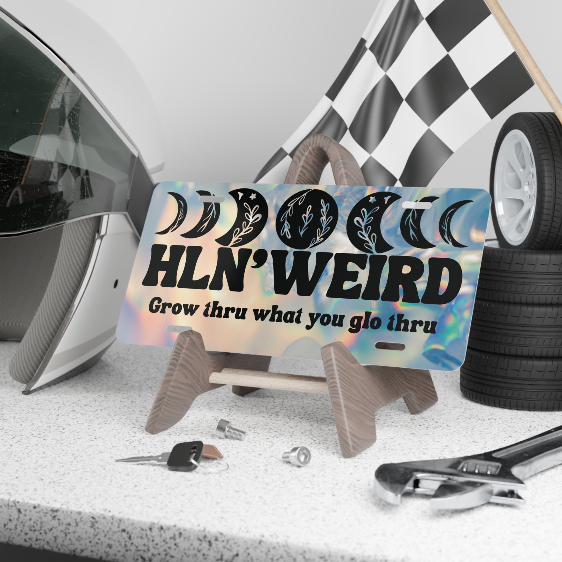 This license plate was made for the eccentric healers, the wild souls, and the moon-chasers still blooming through the weirdness. Featuring lunar phases wrapped in vine magic, bold retro font, and a glowy holographic-style background, this plate is more than decor — it’s a moving mantra.