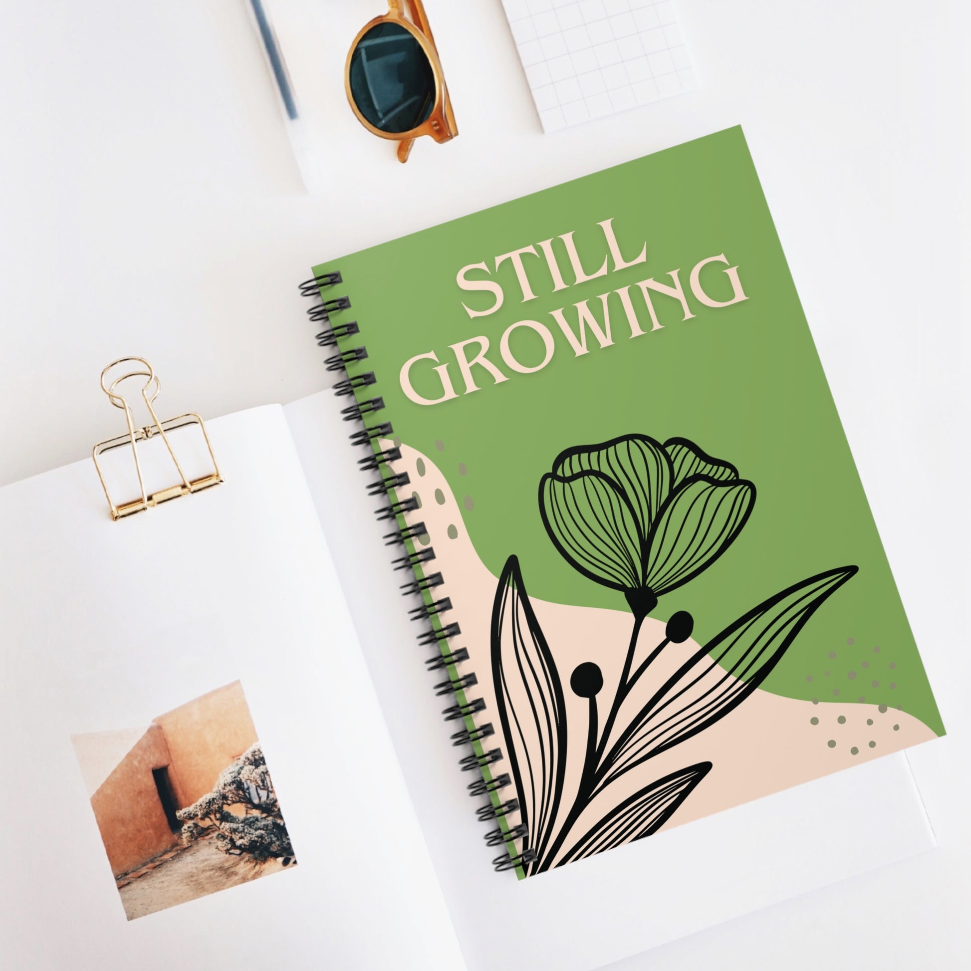 The Still Growing spiral journal blends bold floral art with the empowering message of ongoing transformation. Perfect for daily reflections, gratitude entries, or creative bursts, this journal is your go-to space for documenting the process—not just the outcome.