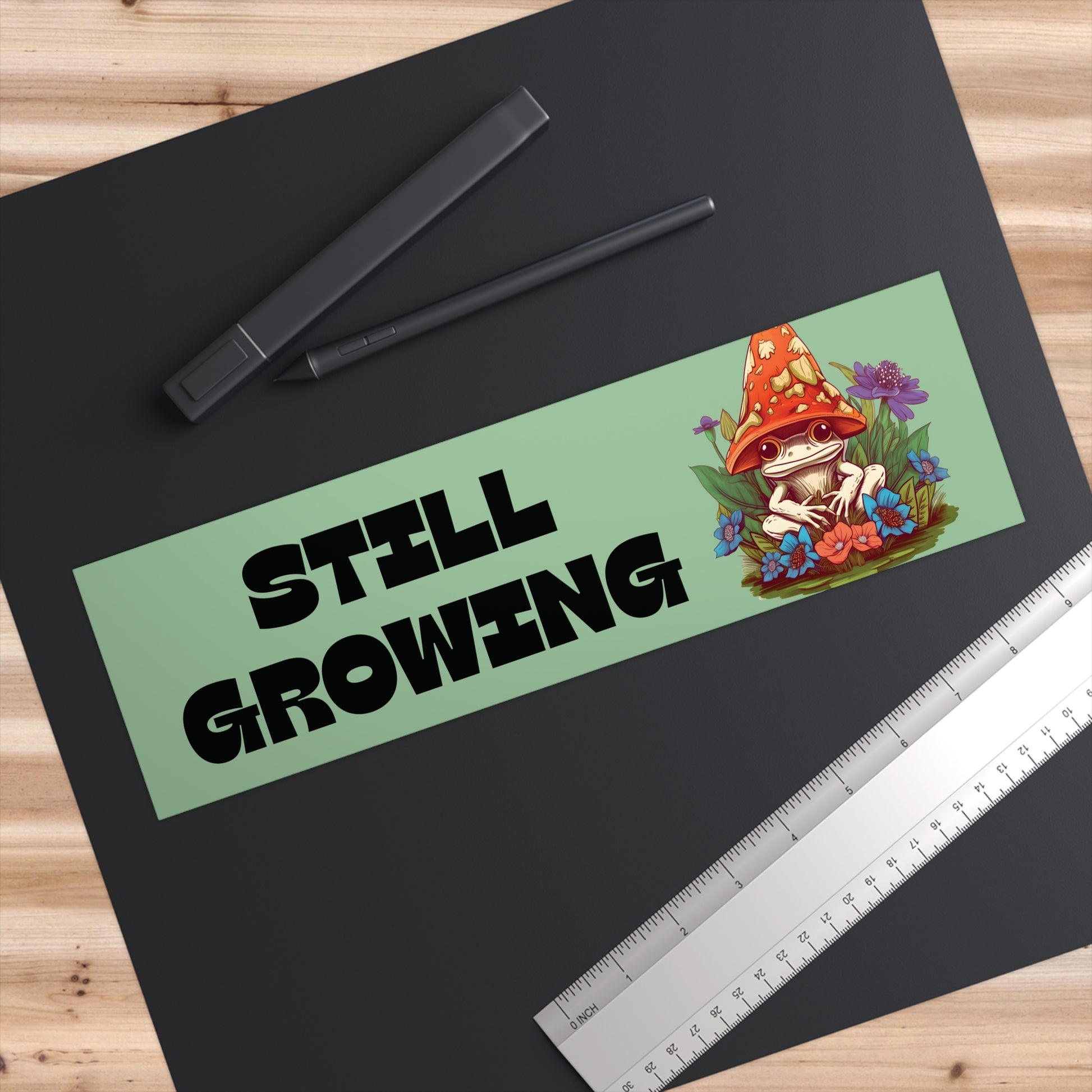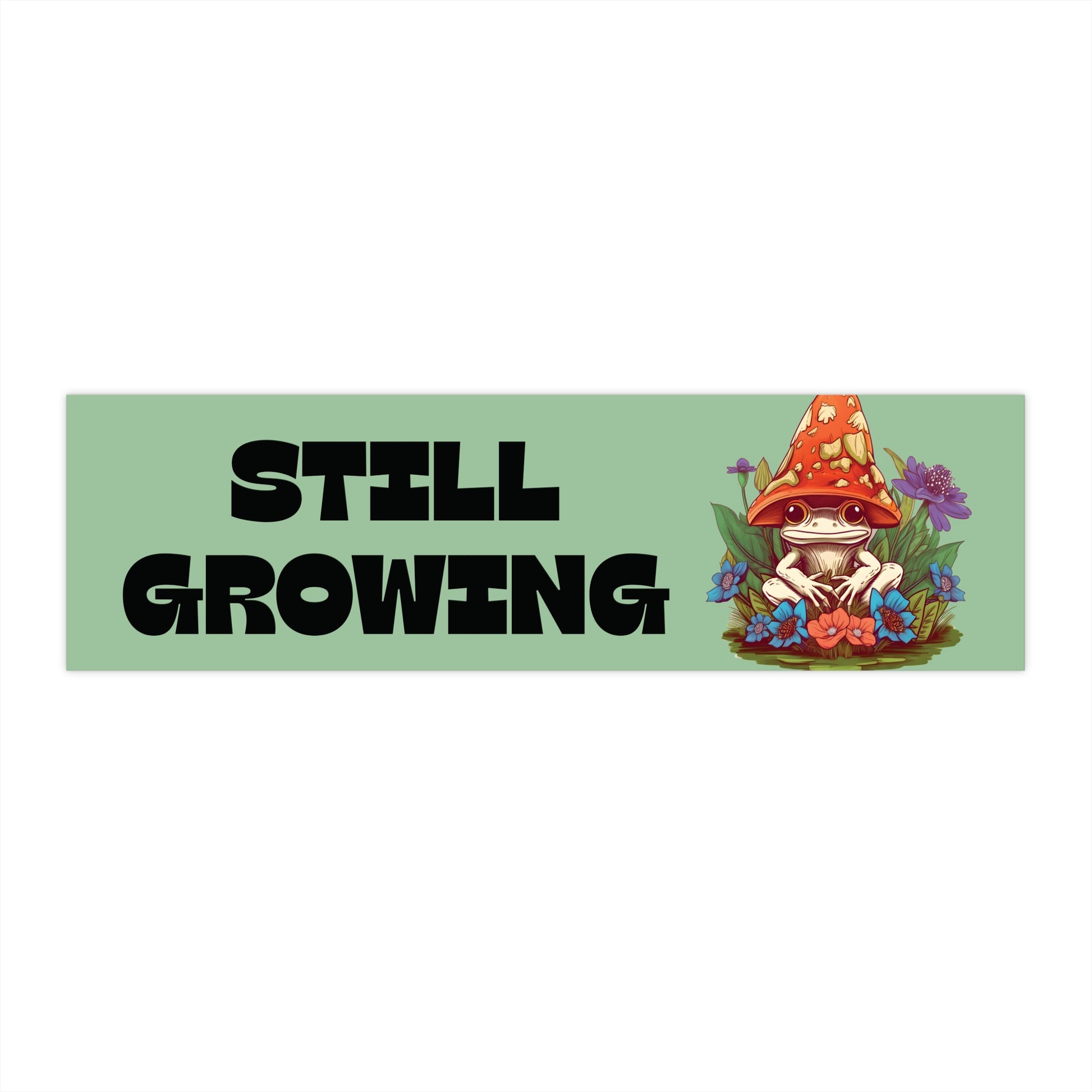 The Still Growing bumper sticker features a charming mushroom-capped frog nestled in vibrant florals, all anchored by a bold affirmation that speaks truth to your personal evolution. Stick it on your car, laptop, water bottle, or wherever you need a colorful reminder that healing isn’t linear—and weird is wonderful.